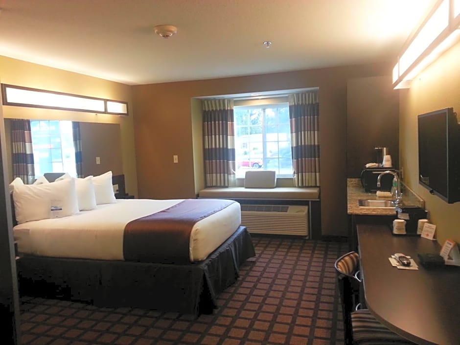 1 Queen Bed Mobility/Hearing Impaired Accessible Studio Suite Non-Smoking is 205 square feet and includes a queen-size bed 150-154 width plus desk, hairdryer, and tea and coffee making facilities .
